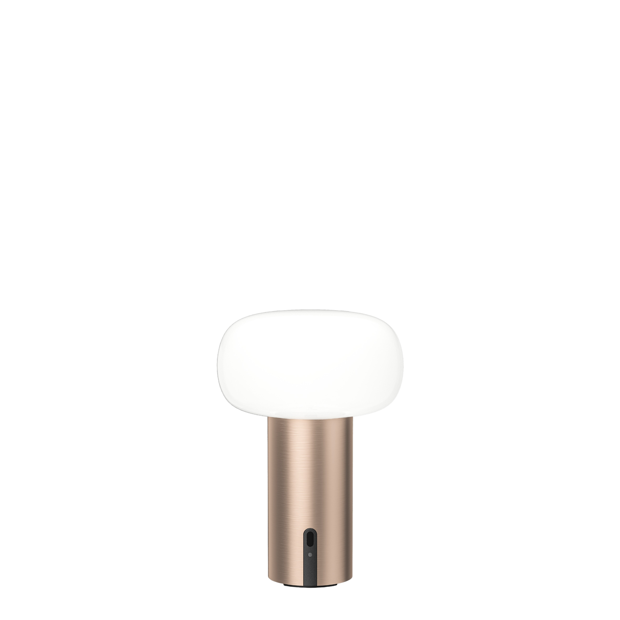 Het nieuwste stuk in onze collectie combineert een paddenstoelachtige vorm met de zachtste gloed. De geborstelde bronzen of gouden afwerking geeft een elegante, luxueuze uitstraling.