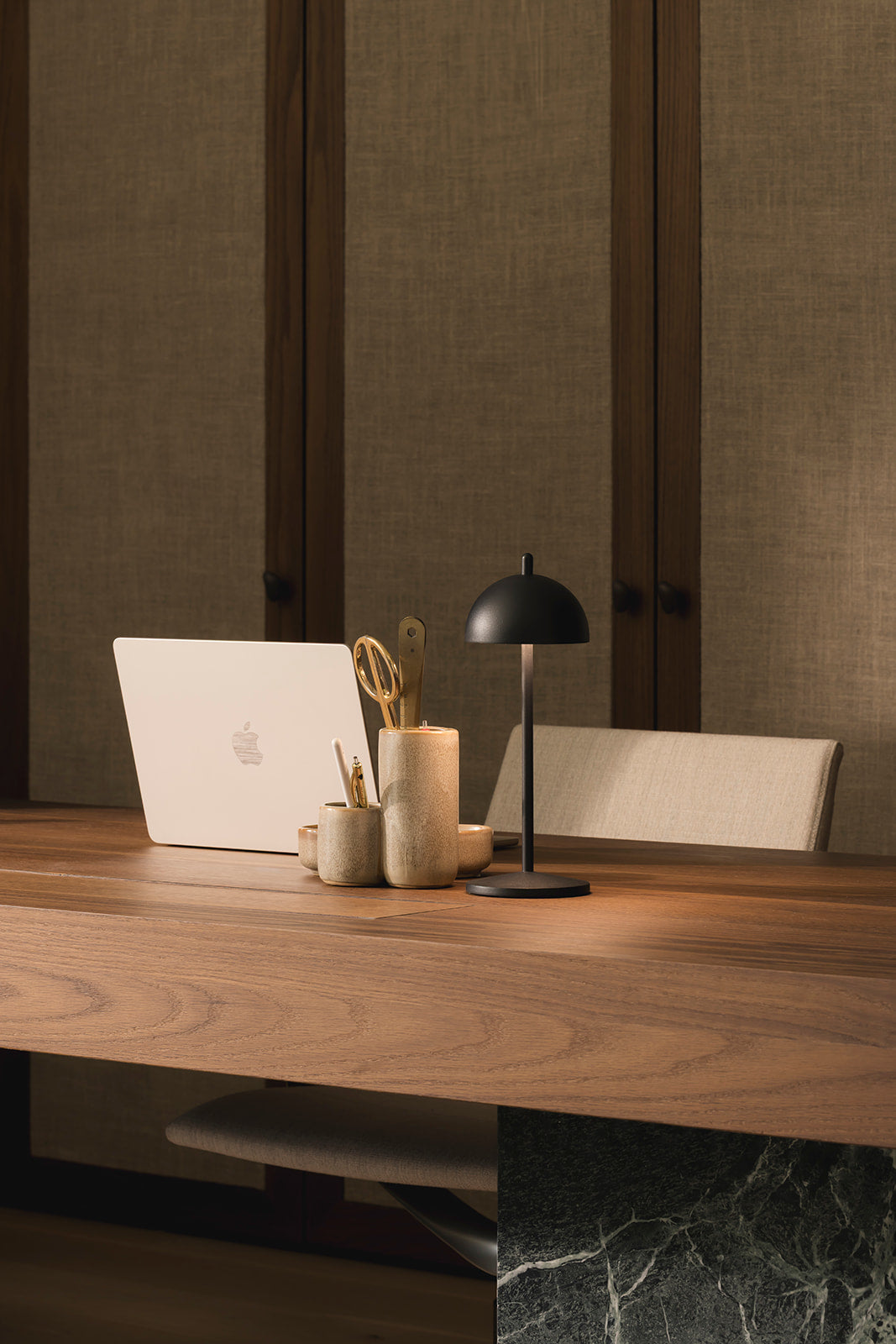 Met zijn koepelvormige kap en verfijnd silhouet straalt de SAMOS-lamp moeiteloze elegantie uit. Een studie in balans die tegelijk heel modern en tijdloos aanvoelt.